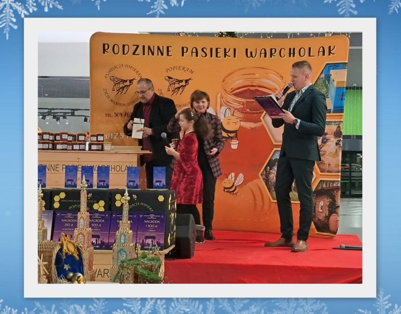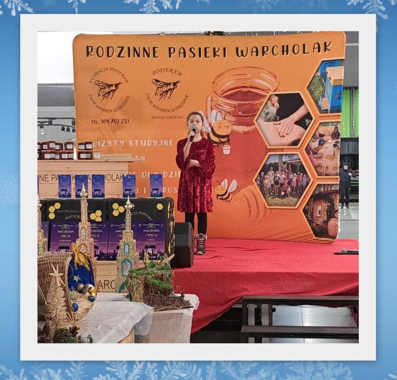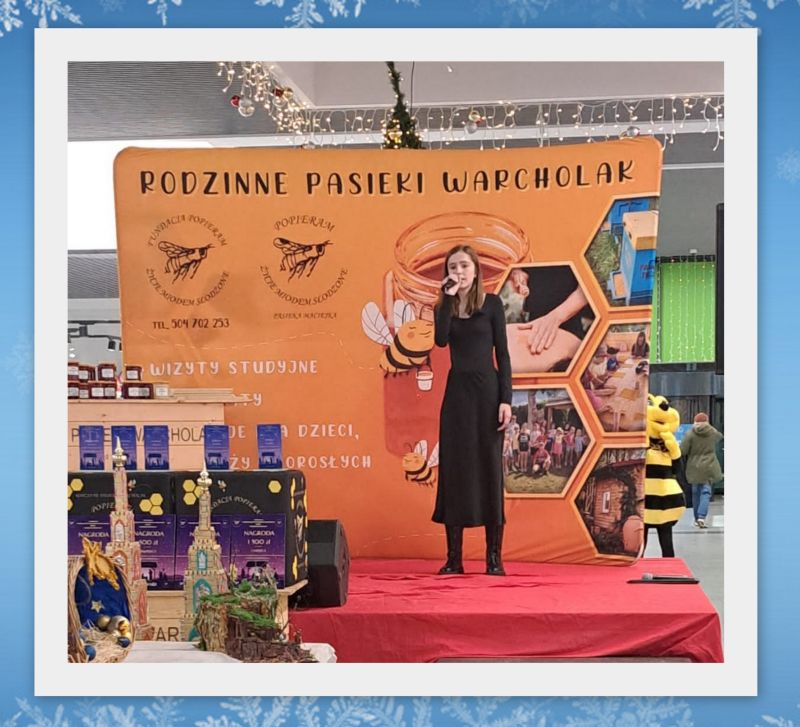18 grudnia uczniowie naszej szkoły: Zuzanna Nowak, Izabela Wiech i Krystian Wójtowicz wzięli udział w koncercie z okazji finału konkursu „Do szopy hej pasterze”, który odbył się w Galerii Navigator. Organizatorem była fundacja „Popieram Życie Miodem Słodzone” oraz „Pasieka Maciejka”.