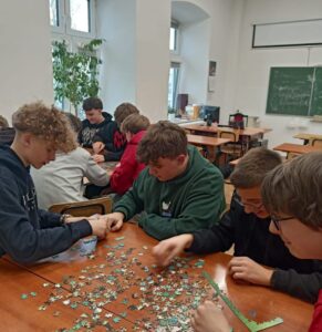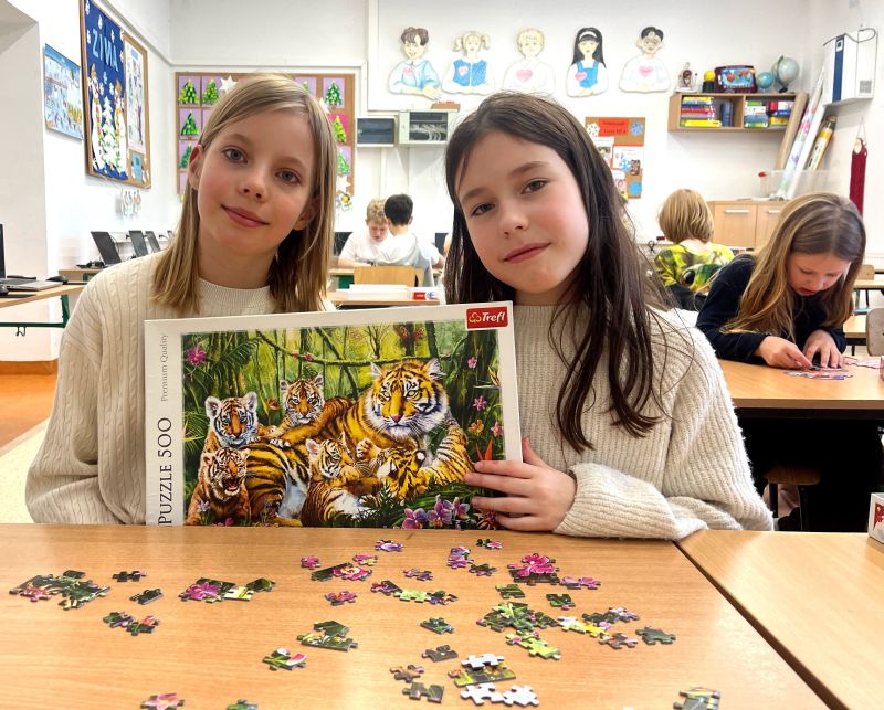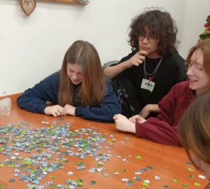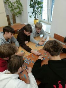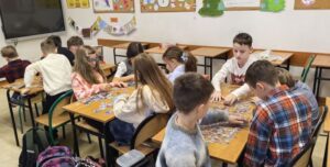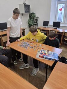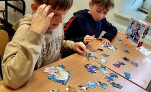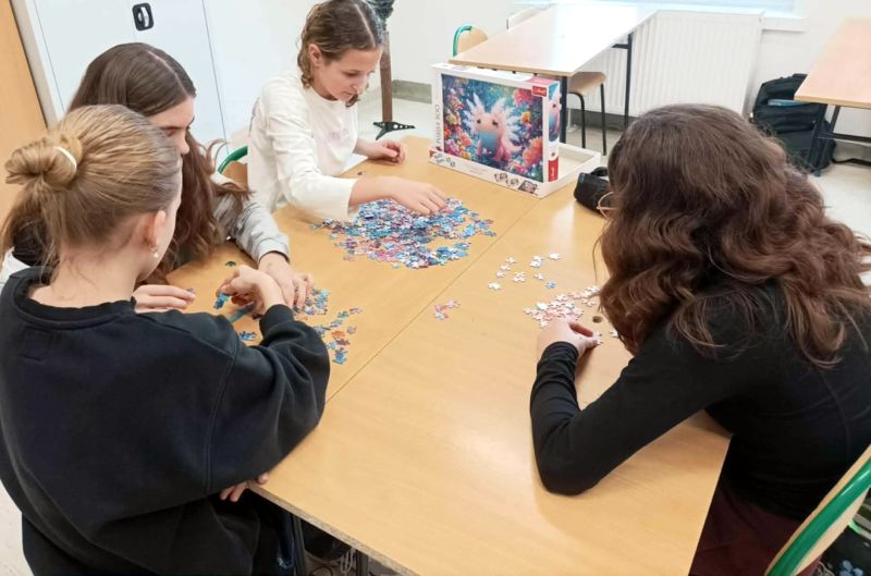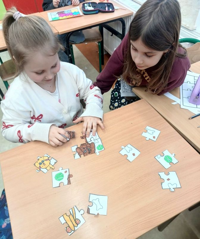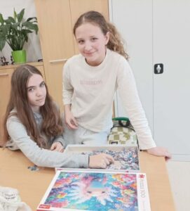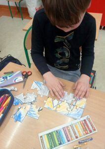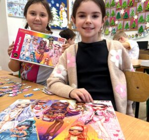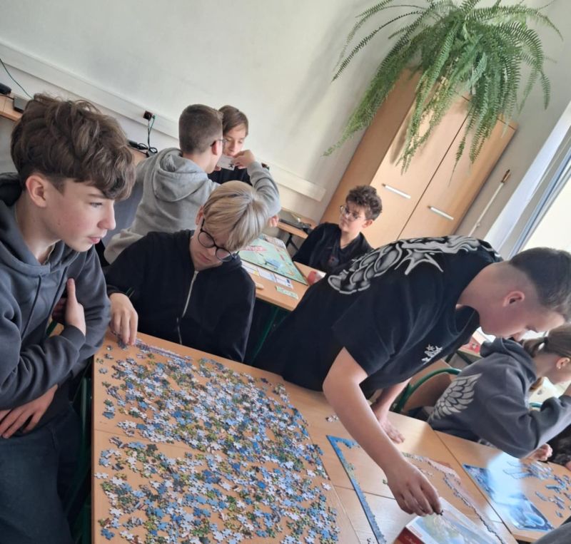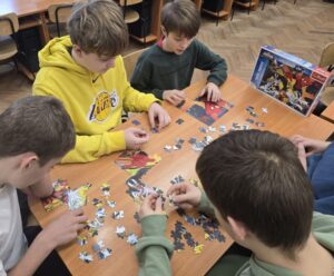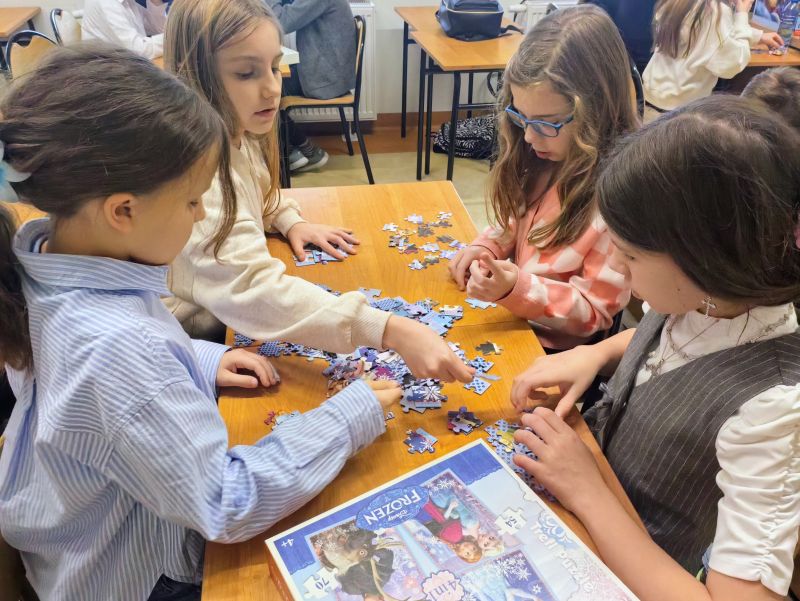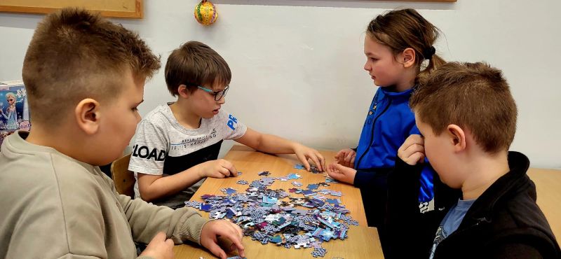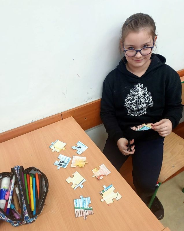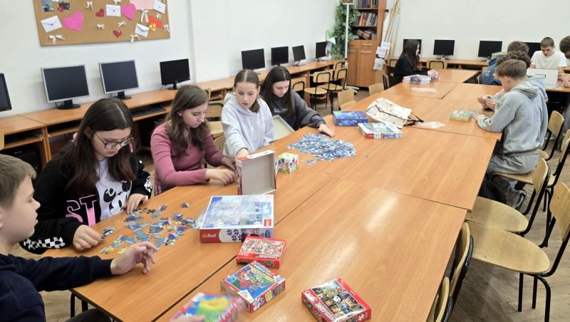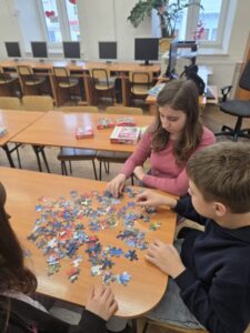 Uczniowie naszej szkoły bardzo chętnie włączyli się w tę akcję i wspólnie układali różne obrazki z małych kawałeczków. Wykonywali również swoje własne układanki.