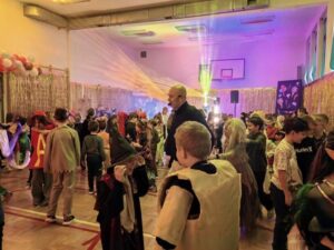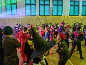 Zabawa choinkowa to jedno z najbardziej oczekiwanych wydarzeń w kalendarzu imprez naszej szkoły. 30 stycznia 2026 r. sala gimnastyczna naszej szkoły zamieniła się w salę balową i zgromadziła uczniów przebranych w różnorodne stroje – od postaci bajkowych, przez superbohaterów, aż po postaci z bajek.