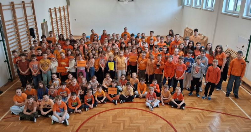 19 marca 2026r. uczniowie i nauczyciele przyszli do szkoły ubrani na pomarańczowo w geście sprzeciwu wobec hejtu oraz solidarności z ofiarami negatywnych zachowań wśród dzieci i młodzieży.