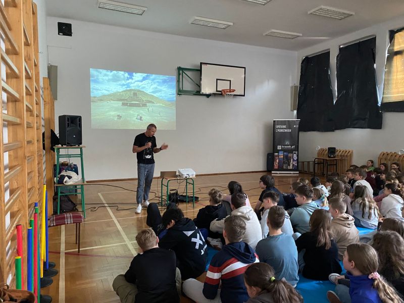 W marcu w naszej szkole odbyło się spotkanie z podróżnikiem z Towarzystwa „Trzask”. Tematem spotkania był Meksyk. Podróżnik opowiadał o ciekawostkach związanych z tym państwem oraz o życiu jego mieszkańców. Uczniowie mogli dowiedzieć się, jak wygląda codzienne życie w Meksyku, jakie są tam tradycje, kultura i przyroda.