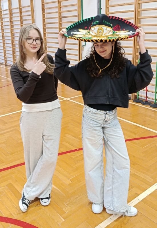 Podróżnik pokazywał także różne przedmioty przywiezione z podróży. Dużą atrakcją dla uczniów była możliwość przymierzenia rekwizytów pochodzących z Meksyku. Dzięki temu mogliśmy jeszcze lepiej poczuć klimat tego kraju.