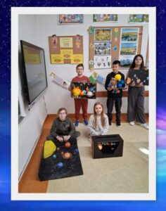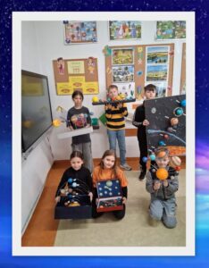 Projekt był doskonałą okazją do połączenia nauki z zabawą i rozwijaniem zainteresowań przyrodniczo-astronomicznych. Dzieci samodzielnie przygotowały modele planet używając rozmaitych materiałów. Każda makieta była piękna, wyjątkowa oraz odzwierciedlała indywidualny pomysł każdego ucznia.