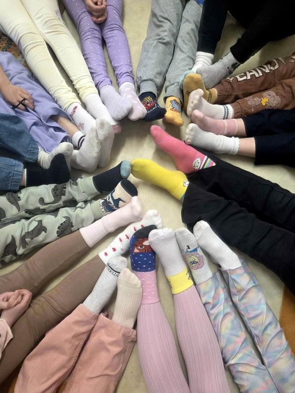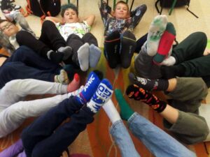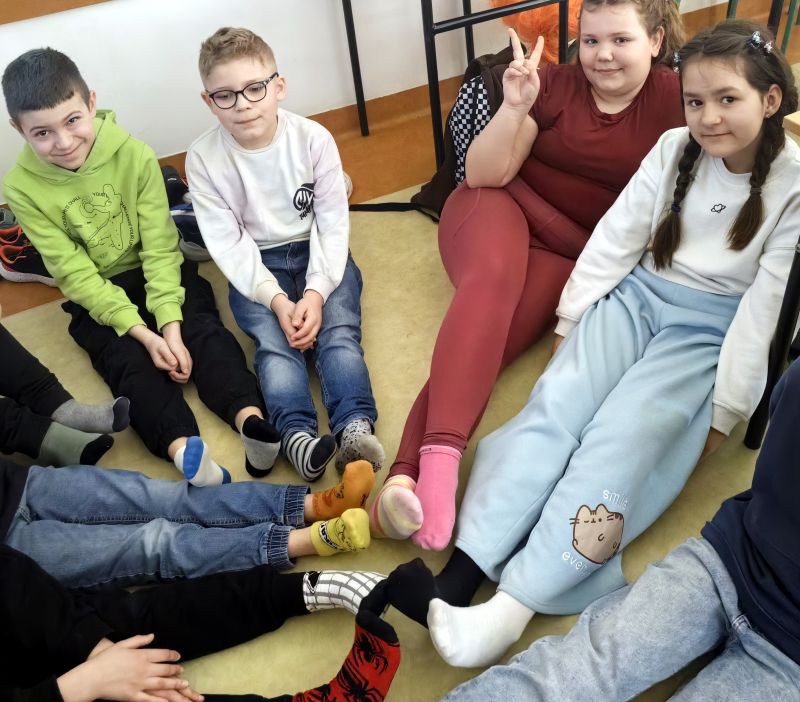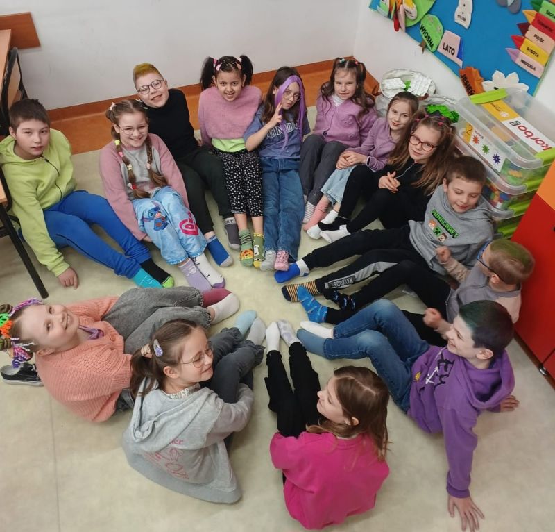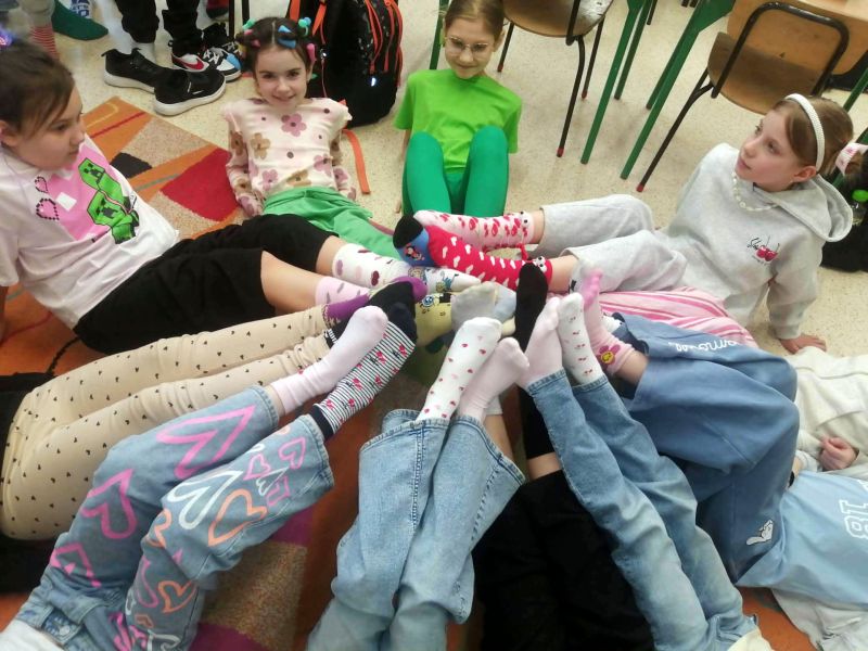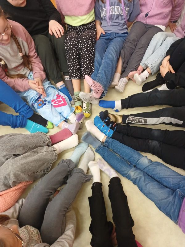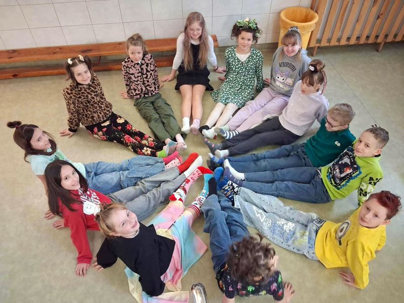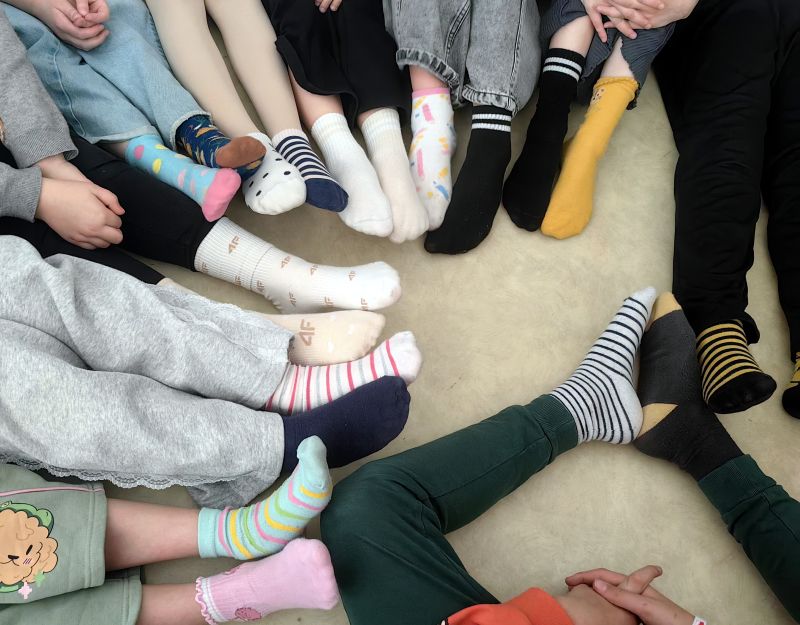 W naszej szkole już dziś uczniowie przyszli do szkoły w kolorowych skarpetach nie do pary, które symbolizują różnorodność, akceptację i solidarność z osobami z Zespołem Downa.