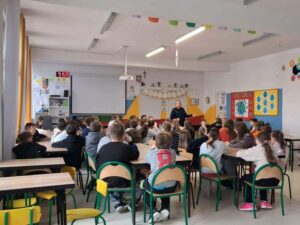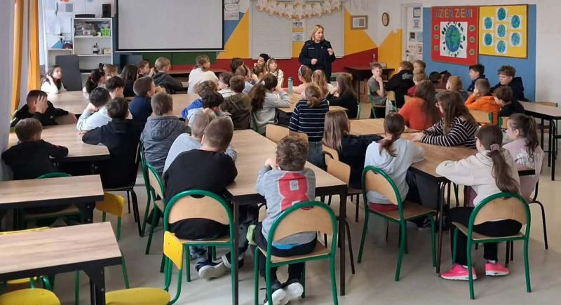 9 kwietnia gościliśmy Panią policjantkę st. asp. Magdalenę Skulimowską, która przeprowadziła z uczniami klas czwartych bardzo ważną pogadankę o bezpieczeństwie w szkole i Internecie. Poruszyła również temat hejtu w sieci, czym jest i jakie konsekwencje niesie brak szacunku wobec innych. Przypomniała o odpowiedzialności, również prawnej, za niewłaściwe zachowania.